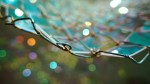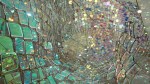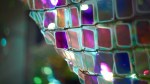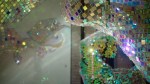 Soo Sunny Park (b. Seoul, Korea) – Unwoven Light at Rice University’s Rice Gallery in Houston, Texas. Composed of 37 individual sculptural units, the installation uses iridescent plexi-glass embedded in pieces of a chain link fence to cast shimmering, colorful reflections across the spacious gallery.