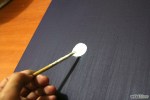 Alternatively, if you don’t want to mess with hollowing the cork and gluing the LED into place, you can also just “frost” over the bottom of your glass and drop the LED straight in. The LED sinks and the “frost” disguises it. I used a touch of white acrylic paint to frost it. It took about 30 seconds.