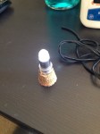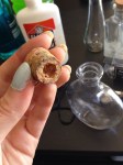 Attach the LED to the cork with a touch of non-toxic glue. Turn on the LED at this point too.