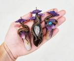 Florida-based artist Cheryl Lee designs nature-inspired pieces, which pay homage to the mystical worlds of fairies, gnomes, princes and princess. Combining a group of natural elements, including seashells, crystals and the visual presence of mushrooms. She says “The process of creation is what is special to me, while the outcome is special to you. What is this world if not a symbiotic relationship, not only to earth and sea but to you and me. ” Find her work in her Etsy shop.